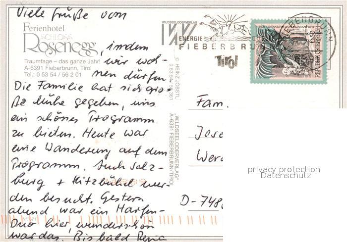 73286562 alte Postkarte Fieberbrunn Tirol Ferienhotel Rosenegg postalisch gelaufen Erhaltung siehe scans [NatalD47] KatCode: 11390335070403