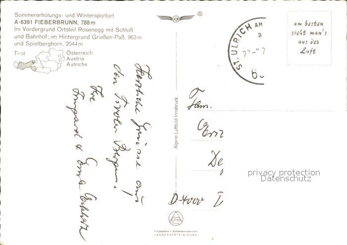 71860181 alte Postkarte Fieberbrunn Tirol Fliegeraufnahme Rosenegg Schloss Bahnhof postalisch gelaufen Erhaltung siehe scans KatCode: 11390335070403