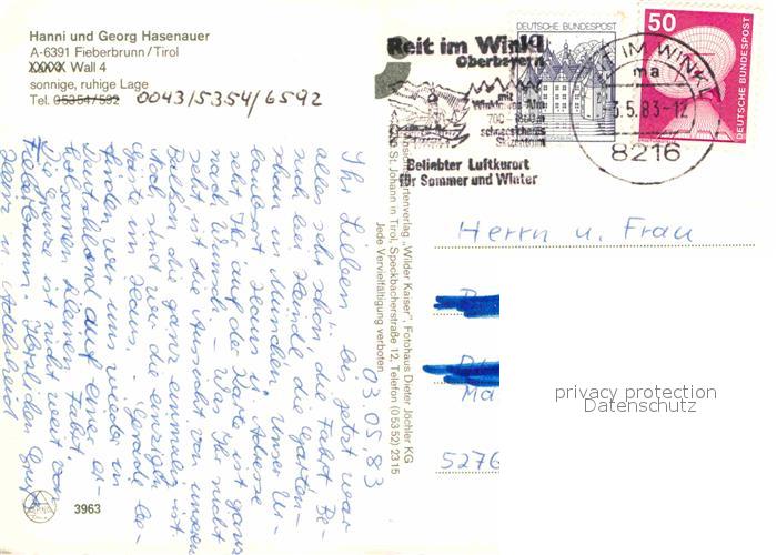 12871423 alte Postkarte Fieberbrunn Tirol Gasthaus Hanni und Georg Hasenauer postalisch gelaufen Erhaltung siehe scans [PaolaD17] KatCode: 11390335070403