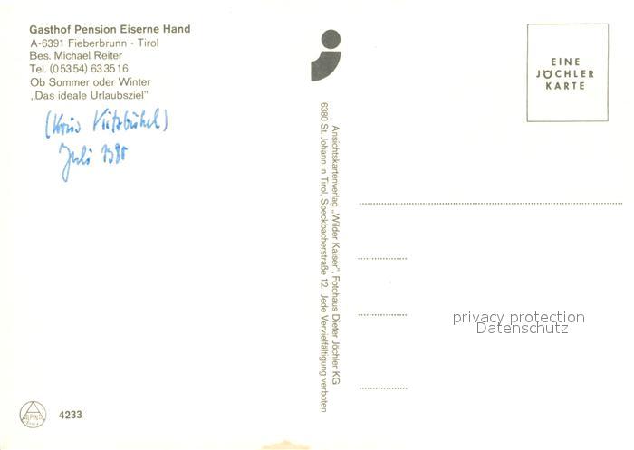 73521392 Fieberbrunn Tirol Gasthof Eiserne Hand Gastraum postalisch nicht gelaufen Erhaltung siehe scans [WerneD78] KatCode: 11390335070403
