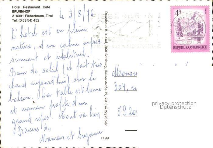 72016480 alte Postkarte Fieberbrunn Tirol Hotel Pension Cafe Brunnhof postalisch gelaufen Erhaltung siehe scans KatCode: 11390335070403