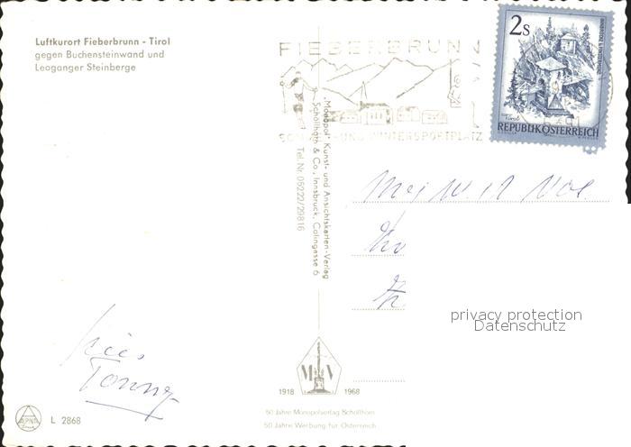 72092185 alte Postkarte Fieberbrunn Tirol mit Buchensteinwand und Leoganger Steinberge postalisch gelaufen Erhaltung siehe scans KatCode: 11390335070403