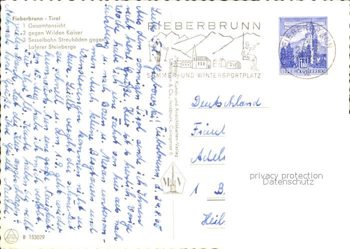 72257252 alte Postkarte Fieberbrunn Tirol mit Wilden Kaiser Sesselbahn Streuboeden Loferer-Steinberge postalisch gelaufen Erhaltung siehe scans KatCode: 11390335070403