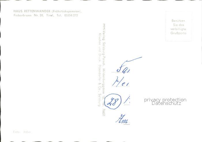 72377921 Fieberbrunn Tirol Pension Haus Rettenwander postalisch nicht gelaufen Erhaltung siehe scans KatCode: 11390335070403
