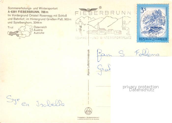 73028939 alte Postkarte Fieberbrunn Tirol Rosenegg Schloss Bahnhof postalisch gelaufen Erhaltung siehe scans [PaolaD17] KatCode: 11390335070403