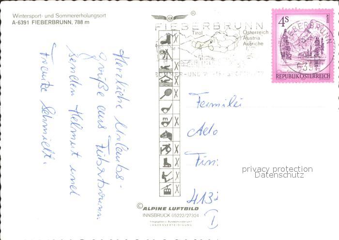 71872061 alte Postkarte Fieberbrunn Tirol Schigebiet Laerchfilzhochalm Fliegeraufnahme postalisch gelaufen Erhaltung siehe scans KatCode: 11390335070403