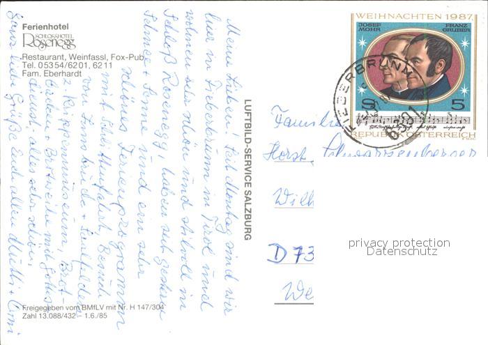 72181103 alte Postkarte Fieberbrunn Tirol Schlosshotel Rosenegg postalisch gelaufen Erhaltung siehe scans KatCode: 11390335070403