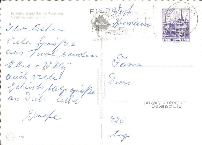 72016853 alte Postkarte Fieberbrunn Tirol Schlosshotel udn Gasthaus Rosenegg postalisch gelaufen Erhaltung siehe scans KatCode: 11390335070403