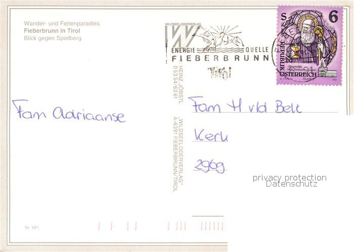 73017228 alte Postkarte Fieberbrunn Tirol Spieberg postalisch gelaufen Erhaltung siehe scans [NatalD47] KatCode: 11390335070403