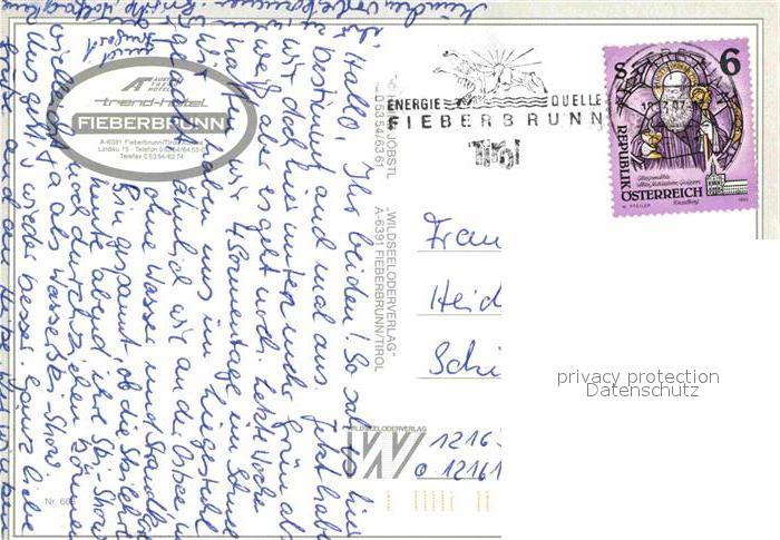 72711548 alte Postkarte Fieberbrunn Tirol Wintersportplatz Hotels Fliegeraufnahme postalisch gelaufen Erhaltung siehe scans [FriedD77] KatCode: 11390335070403