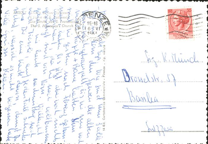 old postcard Fiesole Chiesa di San Francesco postalisch gelaufen gute Erhaltung