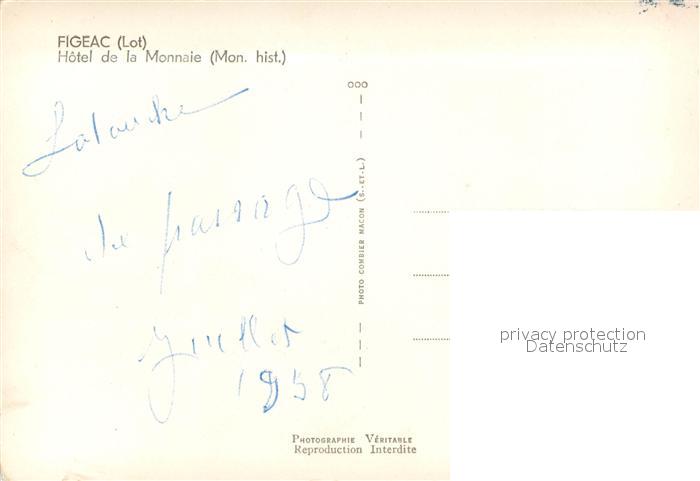 13662474 Figeac Hotel de la Monnaie postalisch nicht gelaufen Erhaltung siehe scans [WerneD78] Wern Katcode 11170046246102