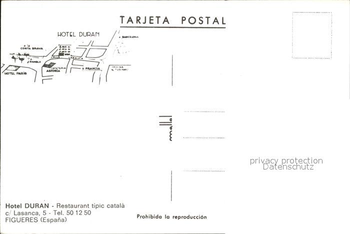 Figueras Figueres Hotel Duran postalisch nicht gelaufen Erhaltung siehe scans