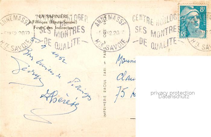 13849120 Fillinges 74 Haute-Savoie La Sapiniere postalisch gelaufen Erhaltung siehe scans [WerneD78] carte postale Wern Katcode 11170074374128