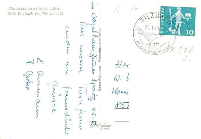 13873354 alte Postkarte Filzbach GL Blaukreuzferienheim Lihn postalisch gelaufen Erhaltung siehe scans [WerneD78] KatCode: 11470090300872