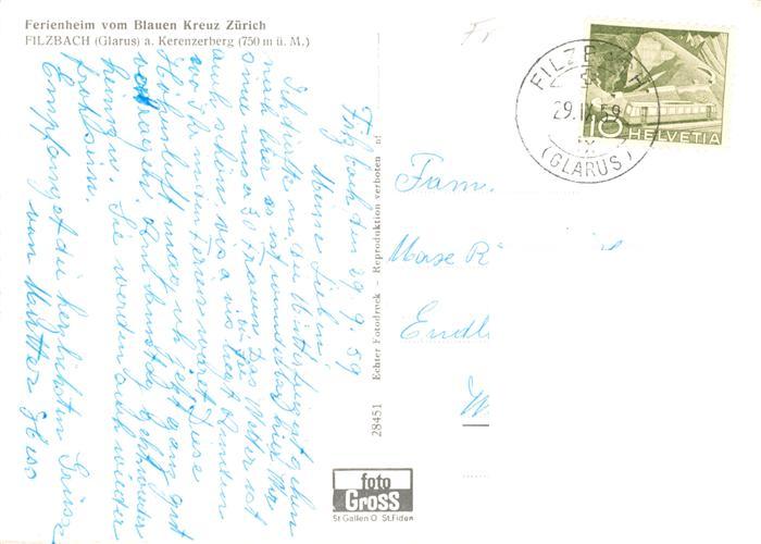 13873358 alte Postkarte Filzbach GL Ferienheim vom Blauen Kreuz Zuerich am Kerenzerberg postalisch gelaufen Erhaltung siehe scans [WerneD78] KatCode: 11470090300872