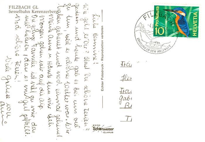 13875927 alte Postkarte Filzbach GL Sesselbahn Kerenzerberg postalisch gelaufen Erhaltung siehe scans [WerneD78] KatCode: 11470090300872