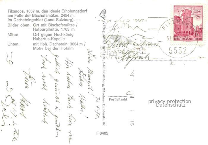 74027536 alte Postkarte Filzmoos AT Teilansichten Erholungsdorf am Fusse der Bischofsmuetze im Dachsteingebirge postalisch gelaufen Erhaltung siehe scans [FriedD77] KatCode: 11390322050407