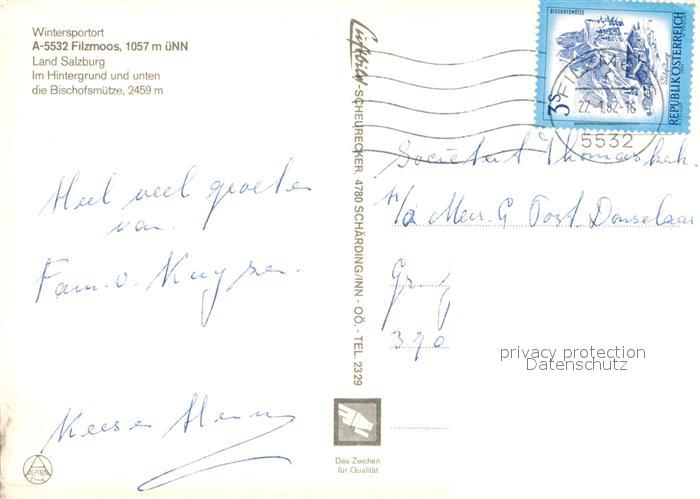 73017217 alte Postkarte Filzmoos Bischofsmuetze postalisch gelaufen Erhaltung siehe scans [NatalD47] KatCode: 11390322050407