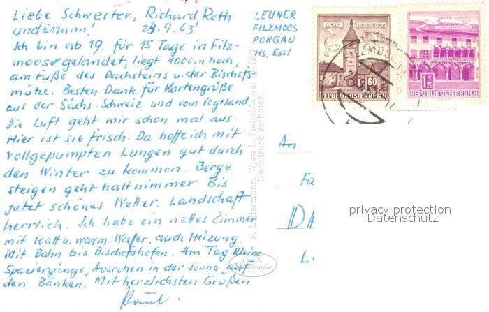72643587 alte Postkarte Filzmoos Bischofsmuetze postalisch gelaufen Erhaltung siehe scans [NatalD47] KatCode: 11390322050407