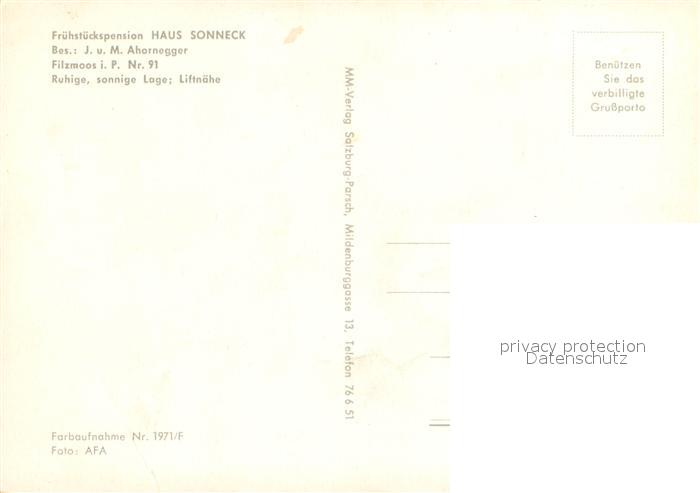 73630015 Filzmoos Fruehstueckspension Haus Sonneck postalisch nicht gelaufen Erhaltung siehe scans [WerneD78] KatCode: 11390322050407
