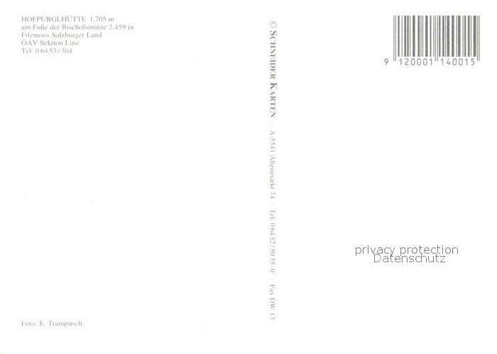 72683871 Filzmoos Hofpuerglhuette Bischofsmuetze postalisch nicht gelaufen Erhaltung siehe scans [WerneD78] KatCode: 11390322050407