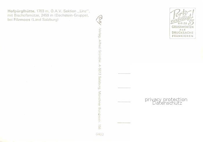 72620746 Filzmoos Hofpuerglhuette mit Bischofsmuetze Erhaltung siehe scans [LiesaD40] KatCode: 11390322050407