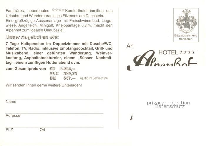 73049268 Filzmoos Hotel Alpenhof postalisch nicht gelaufen Werbekarte (keine Postkarte) Erhaltung siehe scans [KathaD81] KatCode: 11390322050407