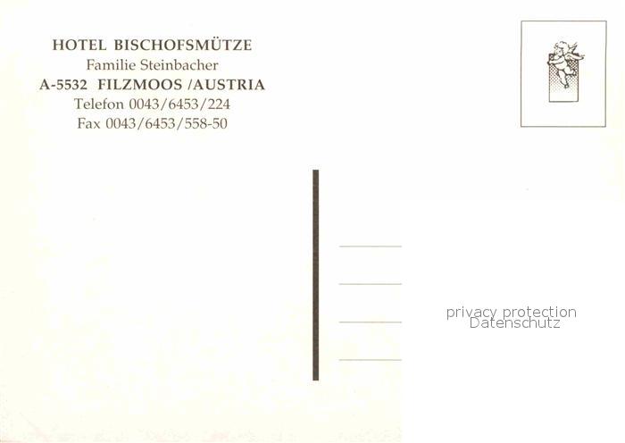 12880945 Filzmoos Hotel Bischofsmuetze postalisch nicht gelaufen Erhaltung siehe scans [KathaD81] KatCode: 11390322050407