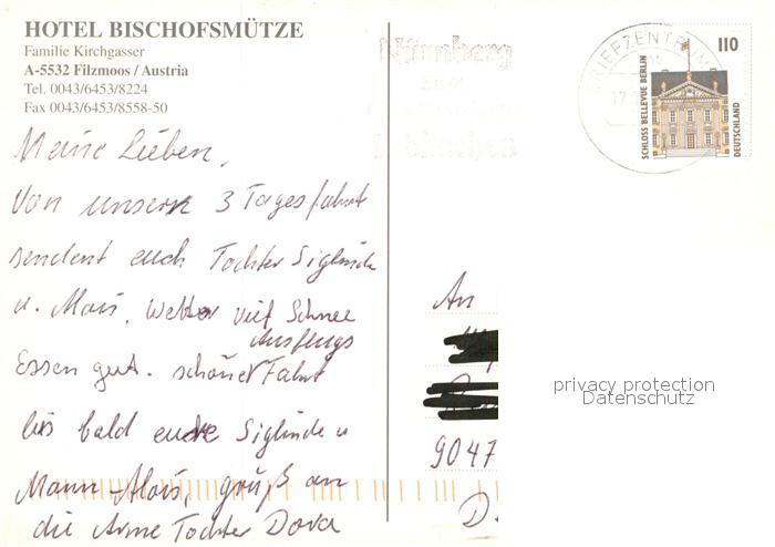 13221842 alte Postkarte Filzmoos Hotel Bischofsmuetze postalisch gelaufen Erhaltung siehe scans [FriedD77] KatCode: 11390322050407