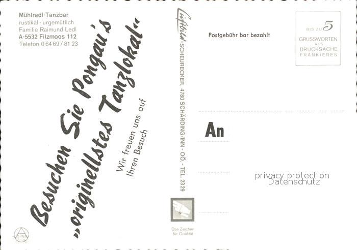 71938017 Filzmoos Muehlradl Tanzbar postalisch nicht gelaufen Erhaltung siehe scans KatCode: 11390322050407