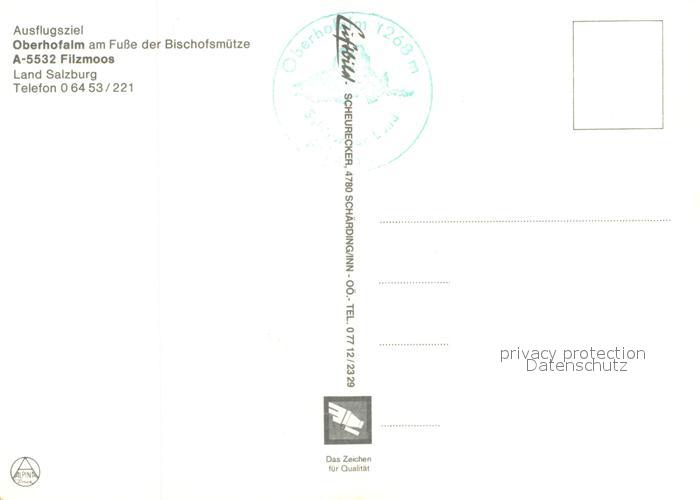 73243690 Filzmoos Oberhofalm Bischofsmuetze postalisch nicht gelaufen Erhaltung siehe scans [KathaD81] KatCode: 11390322050407