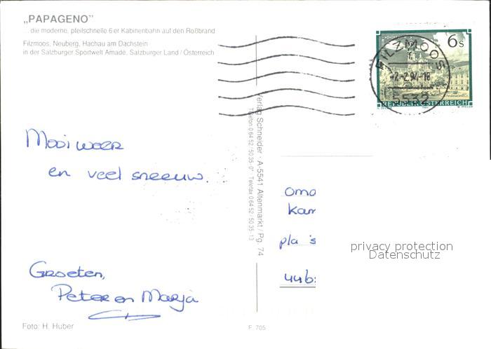 72317375 alte Postkarte Filzmoos Papageno Kabinenbahn postalisch gelaufen Erhaltung siehe scans KatCode: 11390322050407