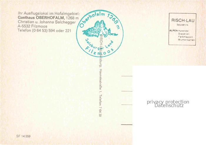 Filzmoos Pinzgau-Pongau AT Gasthaus Oberhofalm postalisch nicht gelaufen Erhaltung siehe scans [IrynaD87] Iryn Katcode 11390322050407