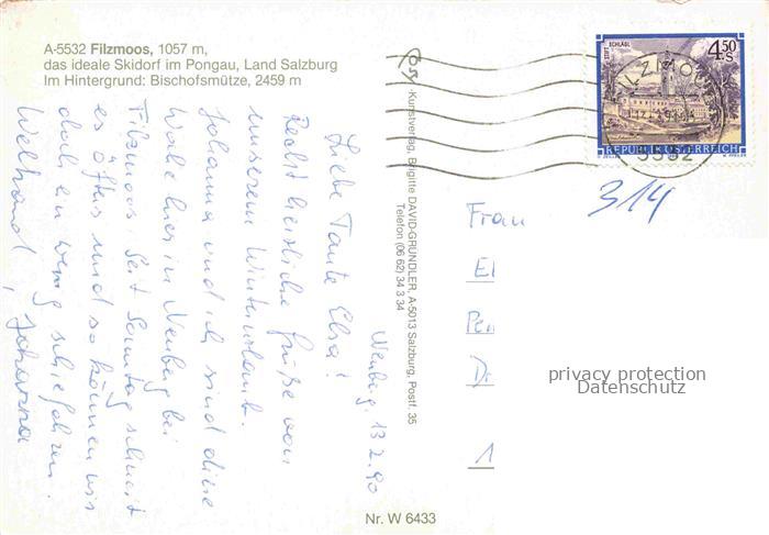 74137601 alte Postkarte Filzmoos Pinzgau-Pongau AT Panorama mit Bischofsmuetze postalisch gelaufen Erhaltung siehe scans [WerneD78] KatCode: 11390322050407