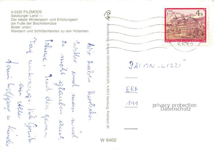 74138843 alte Postkarte Filzmoos Pinzgau-Pongau AT Panorama Wandern und Schlittenfahren zu den Hofalmen postalisch gelaufen Erhaltung siehe scans [WerneD78] KatCode: 11390322050407