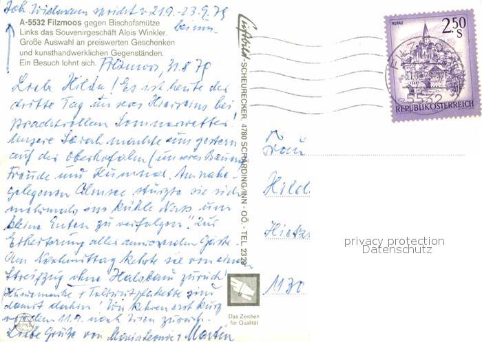 72672170 alte Postkarte Filzmoos Souvenirladen Alois Winkler postalisch gelaufen Erhaltung siehe scans [WerneD78] KatCode: 11390322050407