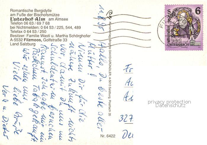 73167773 alte Postkarte Filzmoos Unterhof-Alm am Almsee postalisch gelaufen Erhaltung siehe scans [LiesaD40] KatCode: 11390322050407