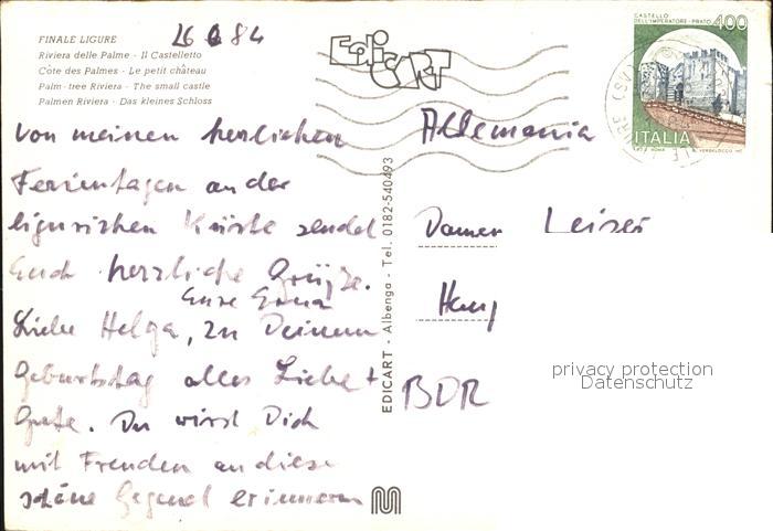 old postcard Finale Ligure postalisch gelaufen Erhaltung siehe scans