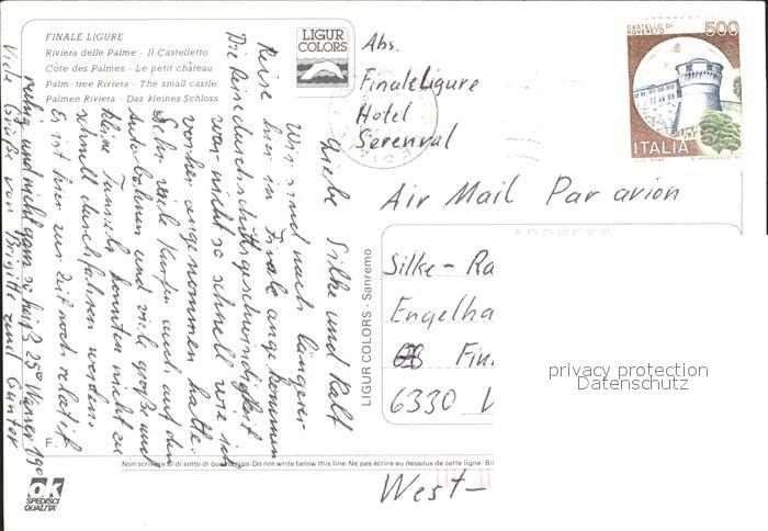 old postcard Finale Ligure Castelletto Riviera delle Palme Schloss postalisch gelaufen Erhaltung siehe scans