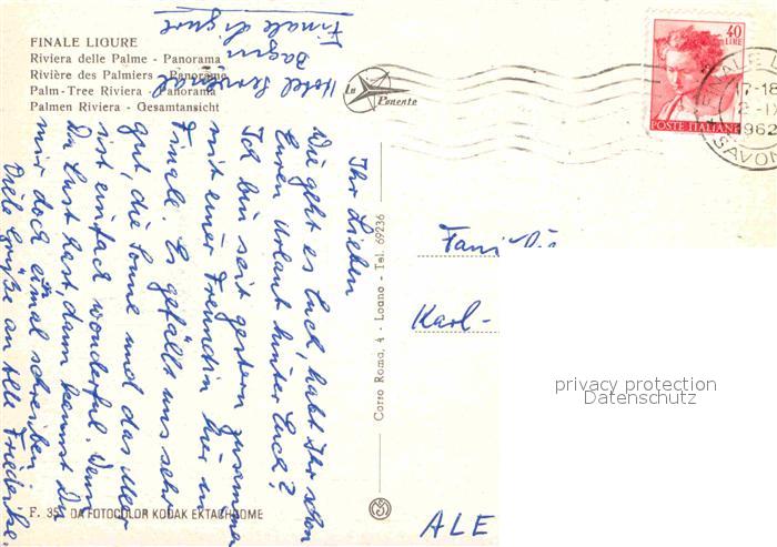old postcard Finale Ligure Fliegeraufnahme postalisch gelaufen Erhaltung siehe scans [AndreD76]