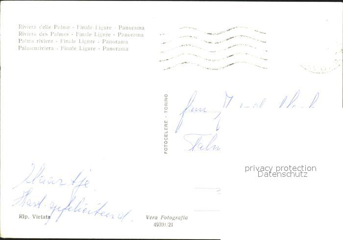 old postcard Finale Ligure Fliegeraufnahme mit Strand postalisch gelaufen Erhaltung siehe scans