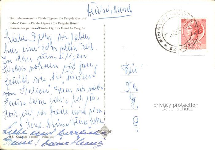 old postcard Finale Ligure Hotel La Pergola Riviera della Palme postalisch gelaufen Erhaltung siehe scans