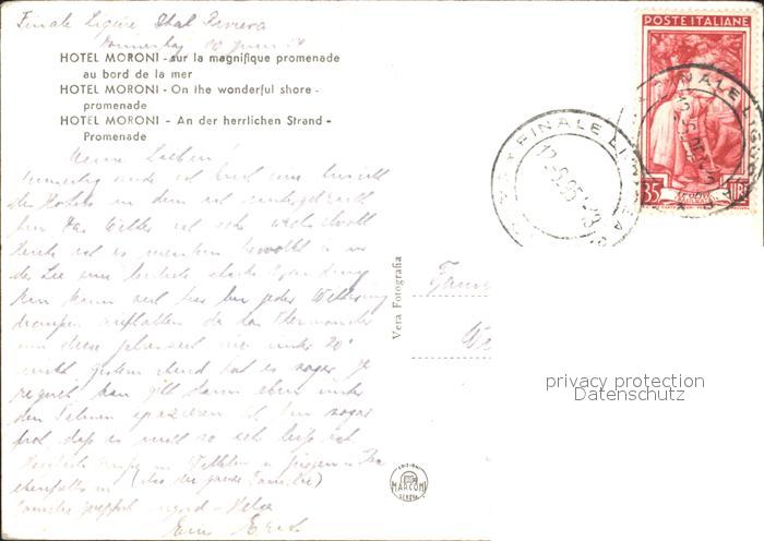 alte Postkarte Finale Ligure Hotel Moroni postalisch gelaufen Erhaltung siehe scans