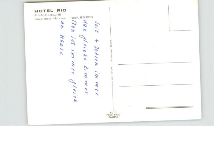 Finale Ligure Hotel Rio Viale delle Mimose postalisch nicht gelaufen