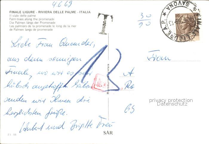 old postcard Finale Ligure Il viale delle palme postalisch gelaufen Erhaltung siehe scans