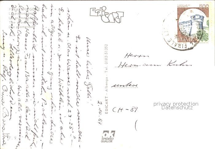 old postcard Finale Ligure La passeggiata Promenade Strand Palmen postalisch gelaufen Erhaltung siehe scans