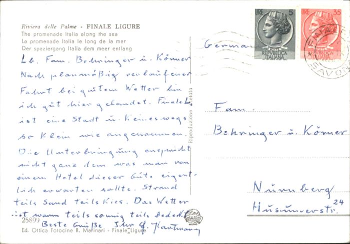old postcard Finale Ligure Lungomare Italia postalisch gelaufen