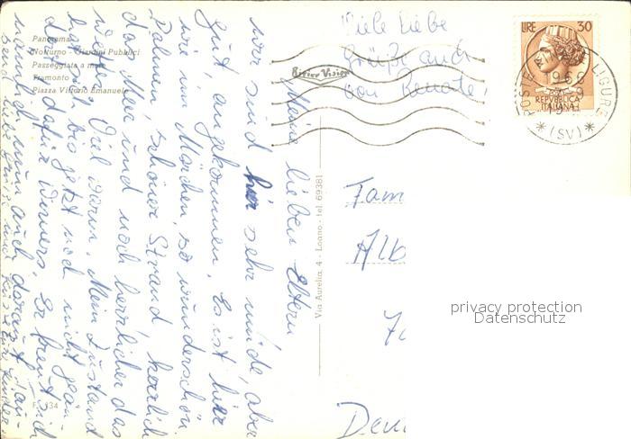 old postcard Finale Ligure Notturno giardini Pubblici Tramonto Piazza Vittorio Emanuele postalisch gelaufen Erhaltung siehe scans