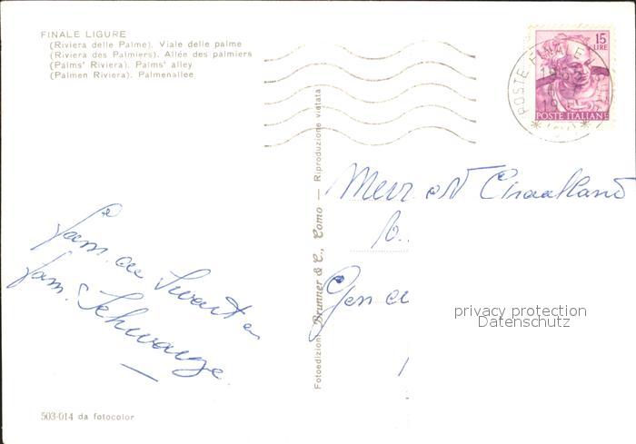 old postcard Finale Ligure Palmenallee postalisch gelaufen Erhaltung siehe scans